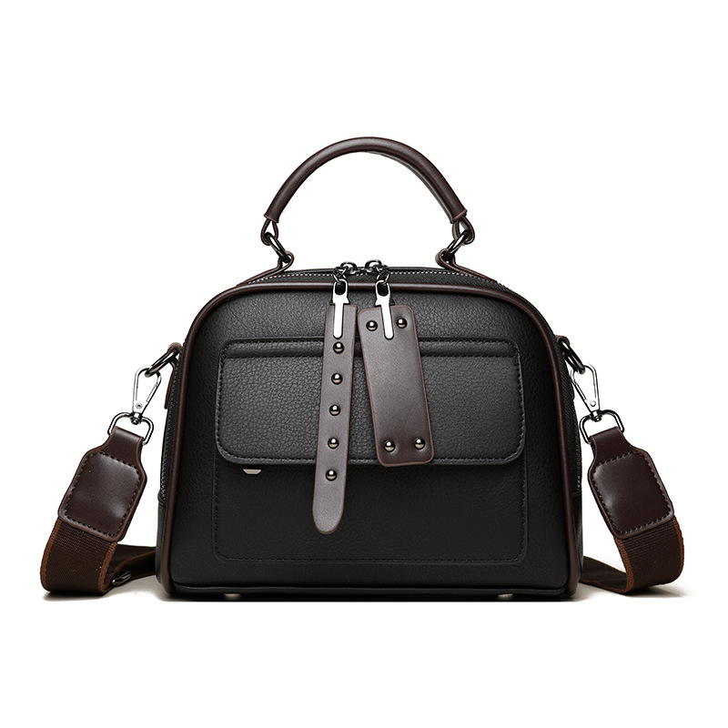 Chaque détail du Sac « Signature Élégance » a été pensé pour allier esthétique et praticité. Les multiples poches et compartiments visibles ou suggérés par le design (poche avant, compartiments intérieurs via les zips) facilitent l’organisation. La qualité des finitions et les accents métalliques (rivets, boucles) soulignent son allure haut de gamme.